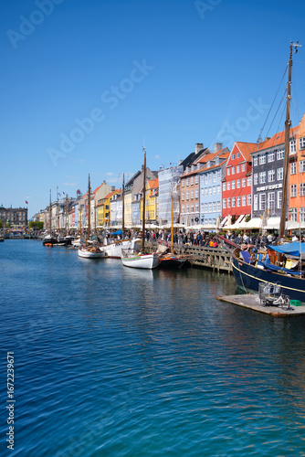 Colorful Waterfront Buildings and Boats in Nyhavn, Copenhagen - May 6, 2023