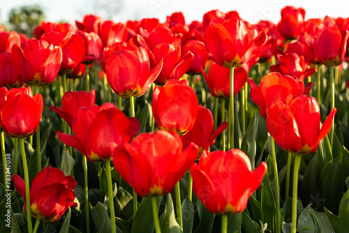 Colors of spring - blossoming red tulips in the garden