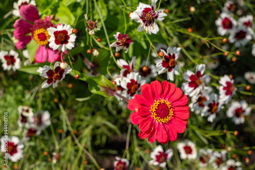 Colourful flower borders, photographed in the August sun at Capel Manor, Enfield UK.