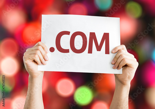 .COM card with colorful background with defocused lights