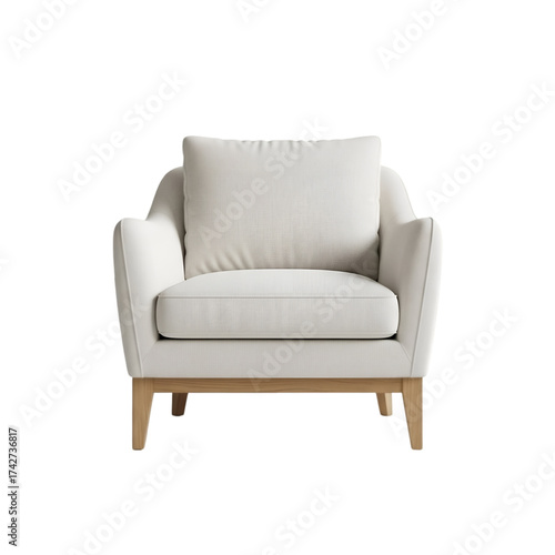Comfortable white armchair with a cushion isolated on white background perfect for interior design mockups and furniture catalogs