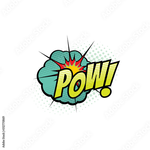 Comic book sound blast, Pow bubble cartoon halftone icon. Vector Pow sound blast explosion pop and burst bang