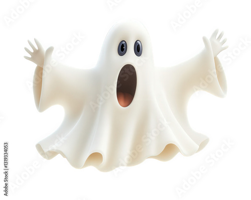 comical ghost with surprised expression, arms raised in fun and whimsy. Perfect for Halloween themes and playful designs