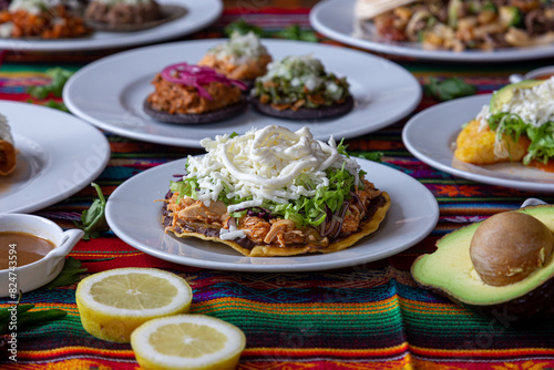 Comida Mexicana en mesa típica llena de colores.