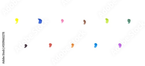 Comma Symbol Set, Hand-drawn Colorful Marker Glyphs on White Background