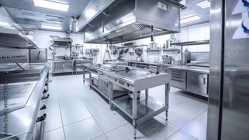 Commercial kitchen with stainless steel - empty kitchen filled with everything a restaurant or food business needs