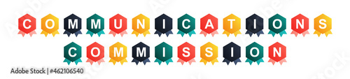 Communications Commission - text written on Beautiful Isolated Colourful Shapes with White background