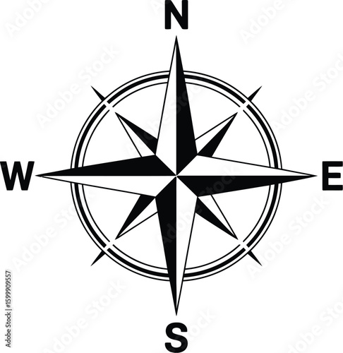 Compass simple icon set. Compass symbol set. Wind rose icon. Vector