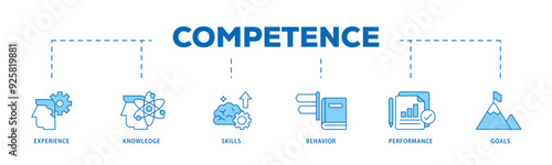 Competence icon infographic illustration concept with icon of experience, knowledge, skills, behavior, performance, and goals icon live stroke and easy to edit
