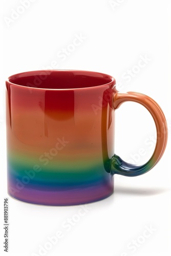 completely empty rainbow coloured mug isolated on white background