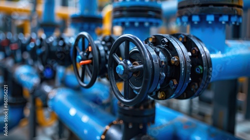 complex network of pvc pipelines in industrial city water treatment boiler room with valves and connections