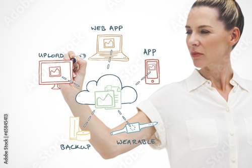 Composite image of businesswoman writing