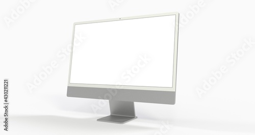 Computer display mock up with blank white screen. Stylish desktop computer mockup. 3d