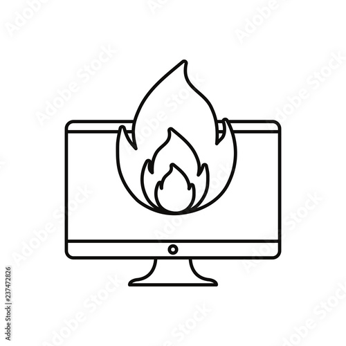 computer fire virus white background