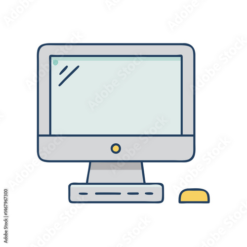 Computer monitor desktop pc workstation with mouse for office and home use vector illustration