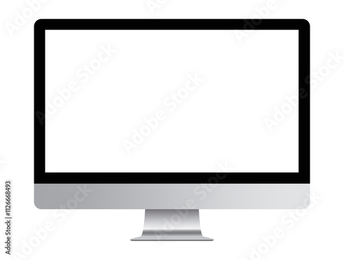 Computer monitor display with empty screen isolated on transparent background.