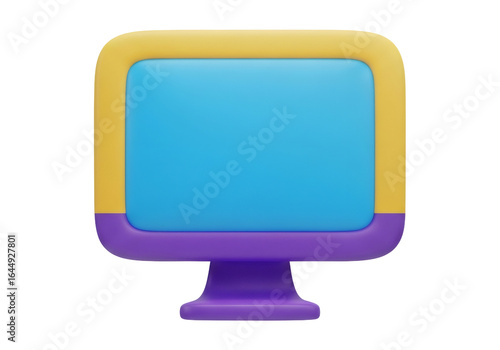 Computer Monitor with a Blue Screen Yellow Frame and Purple Base on Transparent Background