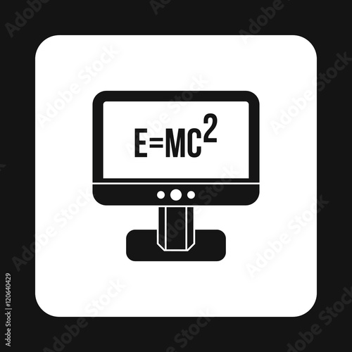Computer monitor with the Theory of Relativity formula icon in simple style on a white background vector illustration