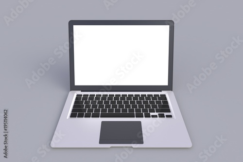 Computer Network Connection Digital Technology, Isolated laptop with empty space on gray background, 3D rendering