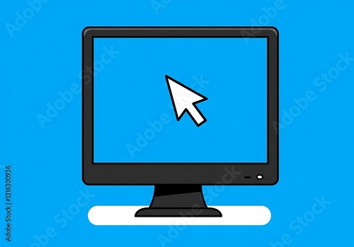 Computer Screen Displaying Cursor on Blue Background for Technology Concept