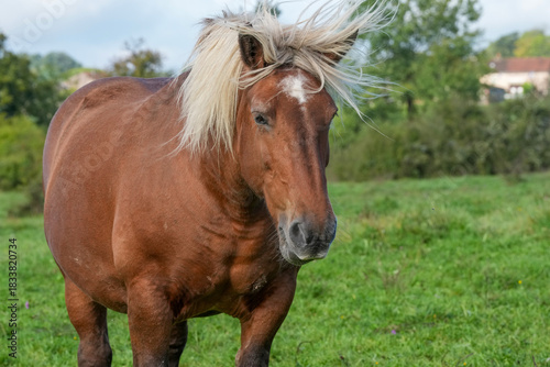 Comtois-Pferd mit vom Wind bewegter Mähne