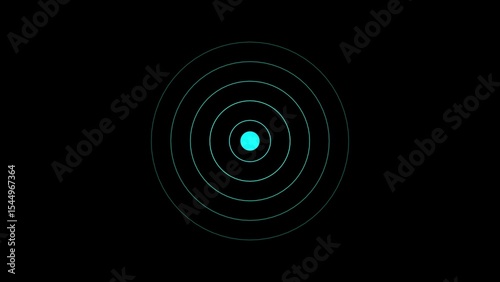 Concentric circle target design with bright blue dot in the center on a black background illustrating precision and accuracy