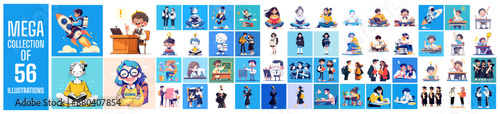 Concept illustrations with an Educational Theme. Used for social media marketing. A mega set featuring a collection of scenes with men and women engaged in various education activities. trendy vector.