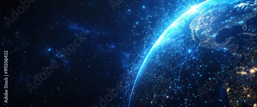 Concept of interconnected world through communication technology and IoT, presented on a panoramic web banner