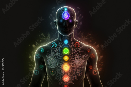 Concept of meditation and spiritual practice for enlightenment, expanding of consciousness, chakras and astral body activation, mystical inspiration image