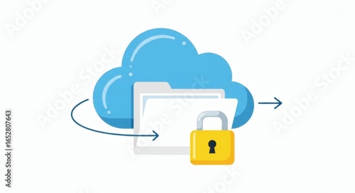 Concept of secure data transfer and storage in the cloud. Folder with a lock representing data protection and privacy.