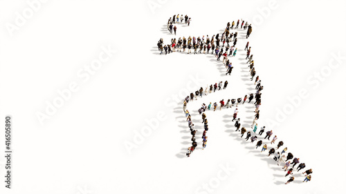Concept or conceptual large community of people as the image of a volleyball player on white background. A 3d illustration metaphor for sport, competition, training, relaxation, family and fun