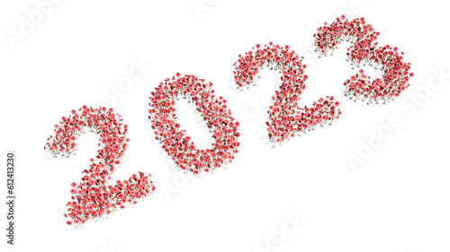 Concept or conceptual set of beautiful blooming gerberas bouquets forming the year 2023. 3d illustration metaphor for hope, future, prosperity, health, romance and love, nature, spring or summer.