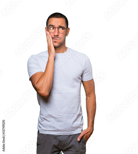 Concerned young man doing a gesture of relief