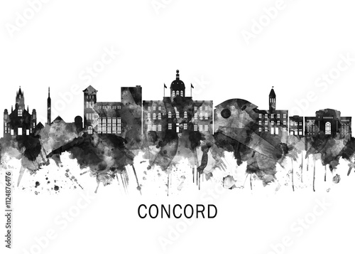 Concord New Hampshire Skyline BW, cityscape buildings city skyline architecture illustration abstract modern painting travel poster landscape print urban art