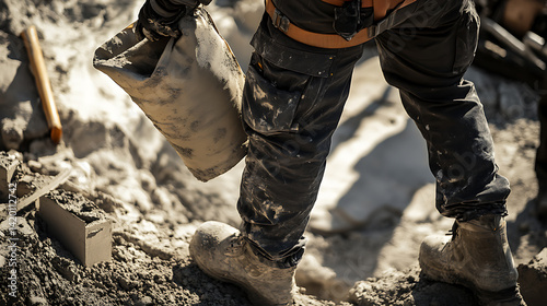 Concrete worker pouring cement into a mold. Featuring precision and teamwork