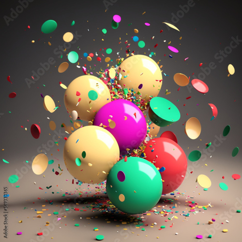confetti and balloons for party, generative ai