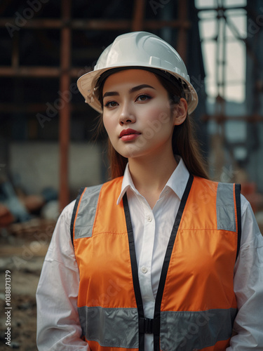 Confident Asian Female Architect Working on a Construction Site