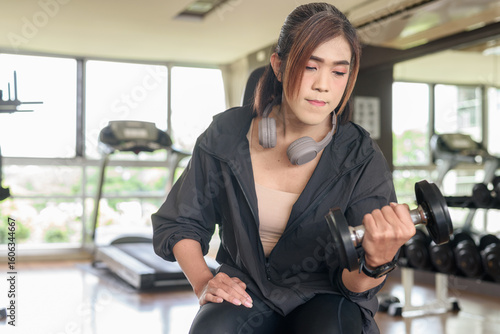 Confident Asian non binary transgender woman in gym training for healthy fitness lifestyle