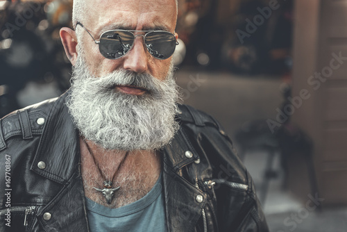 Confident bearded man near garage