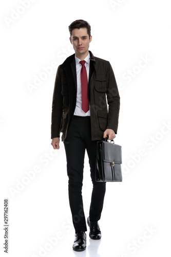 Confident businessman holding a briefcase and walking