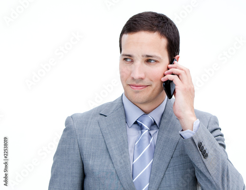 Confident businessman on phone standing