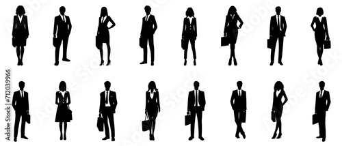 Confident Corporate Team Silhouettes Ready for Business with Briefcases Businessman and woman standing with bag silhouette black filled vector Illustration icon