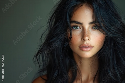 confident woman with luxurious long wavy black hair showcasing a makeup concept the soft lighting enhances her features radiating beauty and selfexpression in a captivating portrait