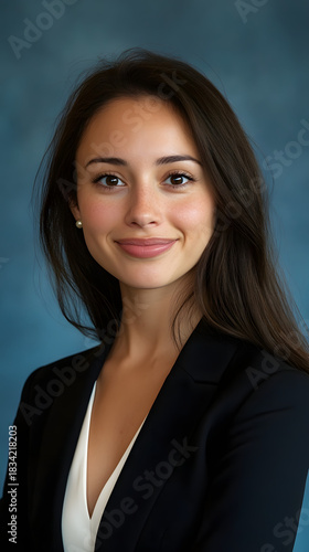 Confident Young Businesswoman in Formal Suit on Blue Background