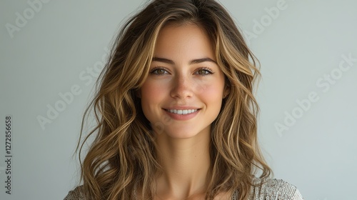 confident young businesswoman smiling,pointing away while engaging with camera professional portrait against clean white background