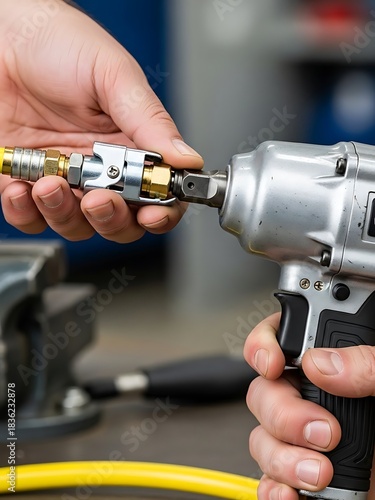 Connecting air impact wrench and hose for pneumatic power tool usage
