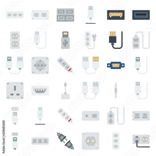 connector cable icons set