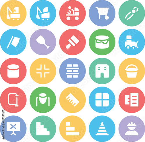 Construction and Real Estate Bold Line Icons