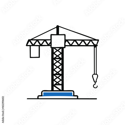 Construction Crane Hand Drawn Illustration Style Tower and Hook Building Process