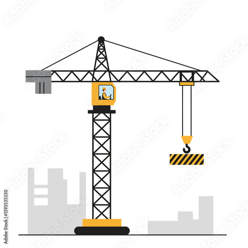 Construction crane lifting heavy load in flat design vector art